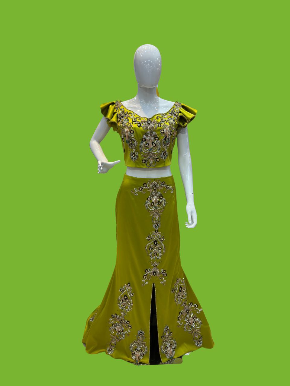 تتميز هذه المجموعة من الفساتين بتصميمها الأنيق والفريد، حيث تجمع بين الأناقة العصرية واللمسات التقليدية. كل فستان يمتاز بقصة طويلة وضيقة تعزز من جمال الجسم، مما يضفي لمسة ساحرة على الإطلالة.