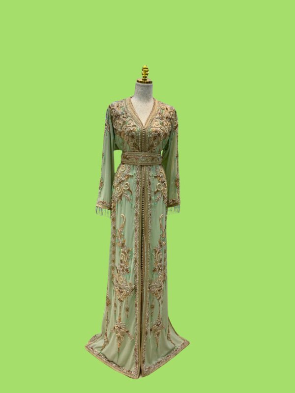 هذا القفطان هو تجسيد للفخامة والأنوثة، حيث يمتاز بتصميمه الرائع الذي يجمع بين التقليد واللمسات العصرية. يتميز بألوانه الجذابة التي تضيف إشراقة على أي إطلالة، مع تطريزات دقيقة تتلألأ تحت الضوء، مما يخلق تأثيرًا بصريًا مدهشًا. الأكمام الشفافة تضيف لمسة من الرقي، بينما الخصر المحدد يعزز من جمال القوام. تعكس الزخارف الذهبية المتقنة تألقًا خاصًا، مما يجعل هذا القفطان مثاليًا للمناسبات الخاصة والحفلات. بفضل تفاصيله الراقية، يمكن ارتداؤه مع إكسسوارات بسيطة لتكمل الإطلالة، مما يجعله خيارًا مثاليًا لكل سيدة تبحث عن التميز والأناقة.