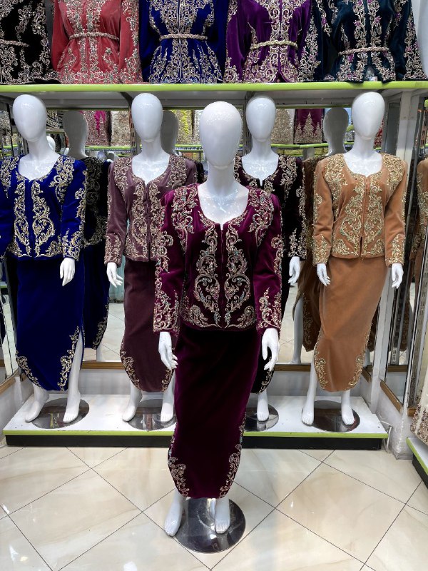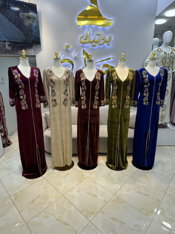 تُصنع الفساتين من أقمشة القطيفة الفاخرة والناعمة، مما يوفر شعورًا بالراحة والرفاهية عند الارتداء. التصميم المدروس يضمن سهولة الحركة، مما يجعلها خيارًا مثاليًا للظهور بأناقة في أي مناسبة.خيار مثالي